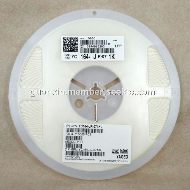 The YC164-JR-071KL is a resistor. This specification describes YC164 (convex) and TC164 (concave) series chip resistor arrays with lead-free terminations made by thick film process. The applications of the YC164-JR-071KL include Terminal for SDRAM and DDRAM, Computer applications: laptop computer, desktop computer, Consume electronic equipment: PDAs, PNDs, Mobile phone, telecom.